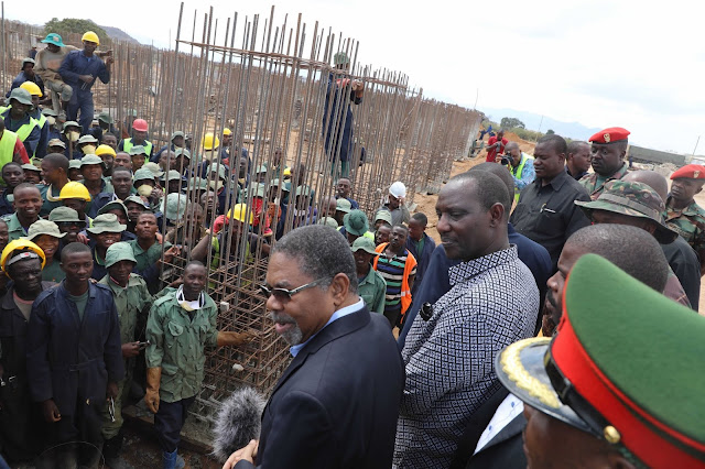 Rais wa Zanzibar na Mwenyekiti wa Baraza la Mapinduzi Mhe.Dkt. Mohamed Ali Shein akizungumza na wajenzi kutoka JKT mara baada ya kukagua kazi za Ujenzi wa Ofisi za Ikulu Mkoani Dodoma leo.