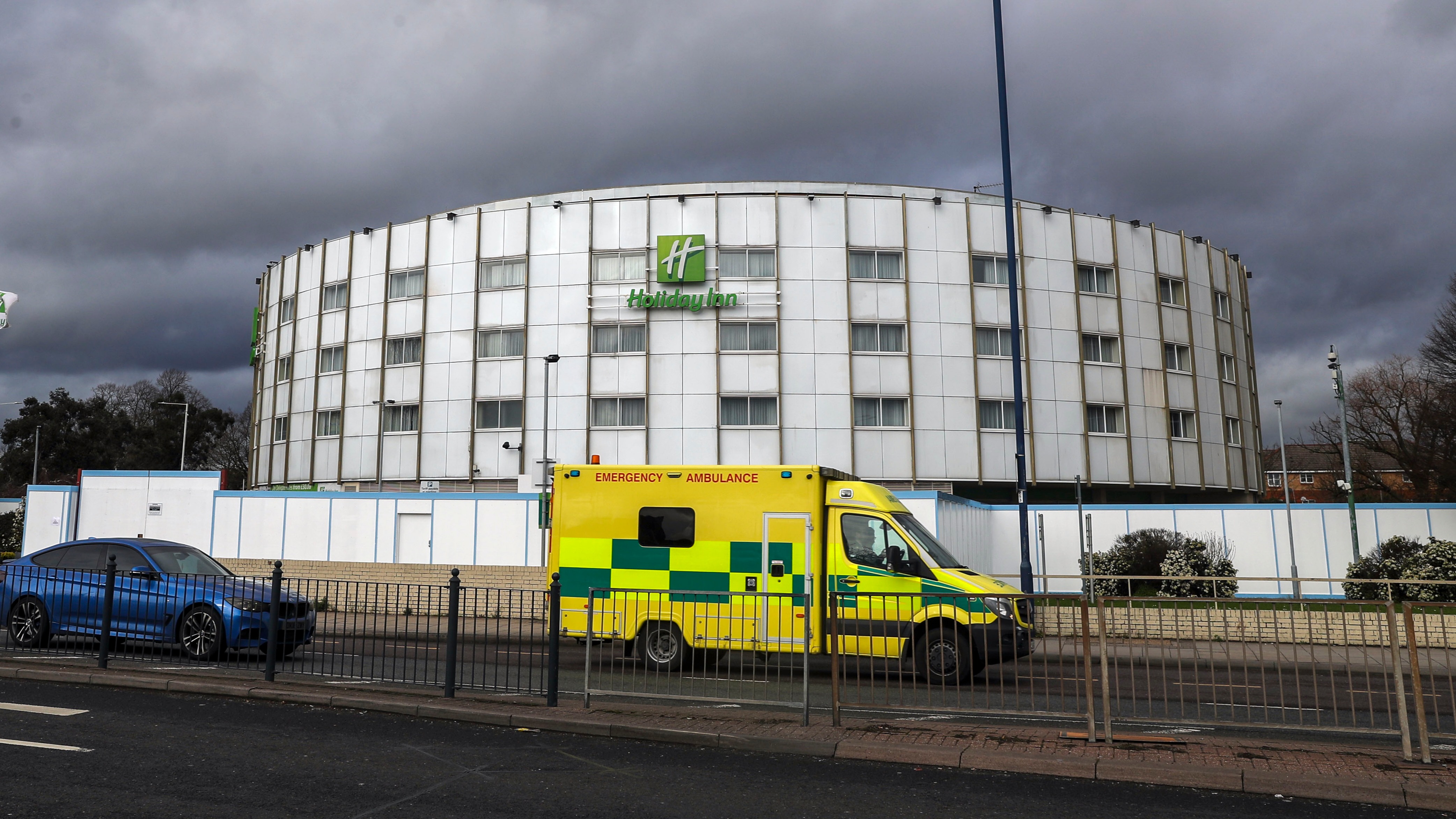 A fence surrounds the Holiday Inn hotel near Heathrow Airport, which has been reserved for people arriving from abroad to self-isolate.
